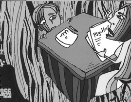 Uli Pforr hatte fast ein Semester ausgesetzt, „die Dozenten hatten mich fast abgeschrieben“. Doch in der Ergotherapie war ihm die Idee gekommen, seinen Psychiatrieaufenthalt zur Abschlussarbeit zu machen. Wieder zuhause springt „die Maschine“ an. Fieberhaft erarbeitet er Grafiken und dazugehörige Texte. Ergebnis: siehe oben.